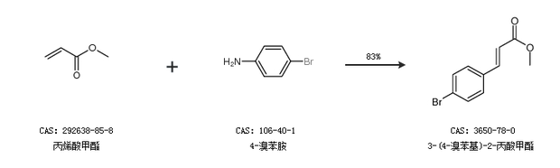 2.通过丙烯酸甲酯和4-溴苯胺合成3-(4-溴苯基)-2-丙酸甲酯,收率约83%;