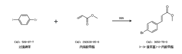 1.通过对溴碘苯和丙烯酸甲酯合成3-(4-溴苯基)-2-丙酸甲酯,收率约99%;
