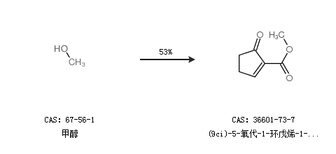 2.通过甲醇合成(9ci)-5-氧代-1-环戊烯-1-羧酸甲酯,收率约53%;
