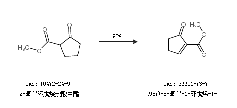 1.通过2-氧代环戊烷羧酸甲酯合成(9ci)-5-氧代-1-环戊烯-1-羧酸甲酯,收率约95%;