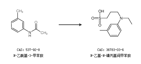 1.通过N-乙酰基-3-甲苯胺合成N-乙基-N-磺丙基间甲苯胺