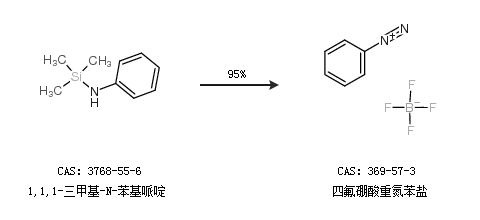 1.通过1,1,1-三甲基-N-苯基哌啶合成四氟硼酸重氮苯盐,收率约95%;