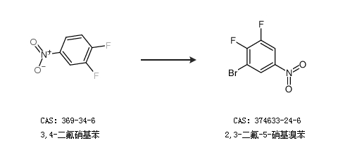 1.通过3,4-二氟硝基苯合成2,3-二氟-5-硝基溴苯