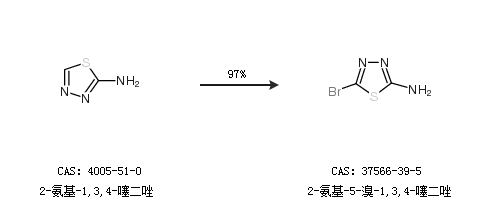 1.通过2-氨基-1,3,4-噻二唑合成2-氨基-5-溴-1,3,4-噻二唑,收率约97%;