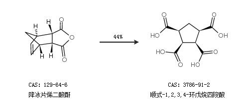 1.通过降冰片烯二酸酐合成顺式-1,2,3,4-环戊烷四羧酸,收率约44%;