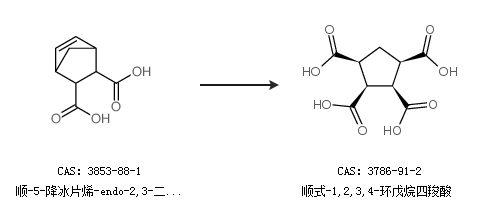 2.通过顺-5-降冰片烯-endo-2,3-二羧酸合成顺式-1,2,3,4-环戊烷四羧酸