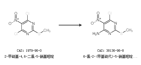 2.通过2-甲硫基-4,6-二氯-5-硝基嘧啶合成6-氯-2-(甲基硫代)-5-硝基嘧啶-4-胺