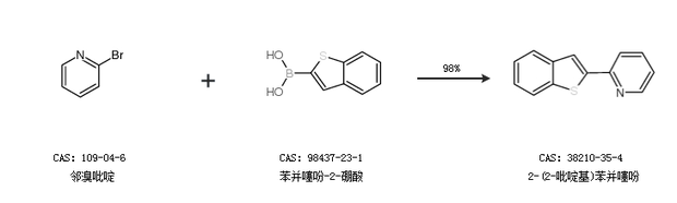 1.通过邻溴吡啶和苯并噻吩-2-硼酸合成2-(2-吡啶基)苯并噻吩,收率约98%;