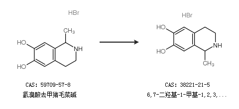 中文名称 6,7-二羟基-1-甲基-1,2,3,4-四氢异喹啉氢溴酸