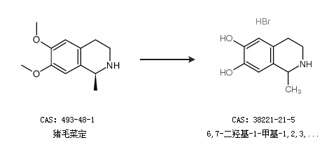英文名称 (1S)-1-methyl-1,2,3,4-tetrahydroisoquinoline-6,7-diol,hydrobromide