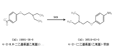 1.通过4-(2-N,N-二乙基氨基乙氧基l)-1-硝基苯合成4-(2-(二乙基氨基)乙氧基)-苯胺,收率约94%;