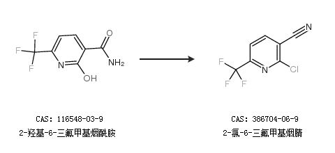 2.通过2-羟基-6-三氟甲基烟酰胺合成2-氯-6-三氟甲基烟腈