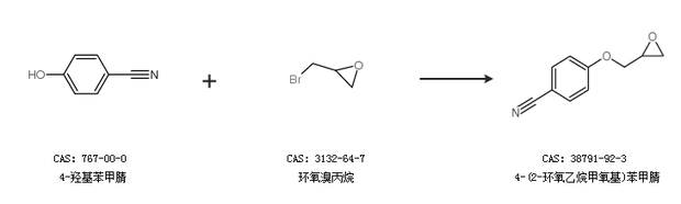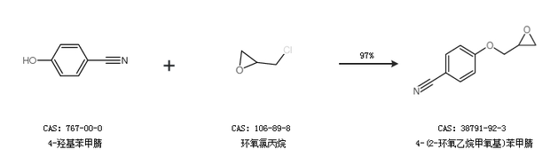 1.通过4-羟基苯甲腈和环氧氯丙烷合成4-(2-环氧乙烷甲氧基)苯甲腈,收率约97%;