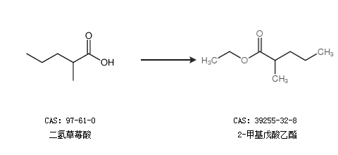 1.通过乙醇和二氢草莓酸合成2-甲基戊酸乙酯,收率约99%;