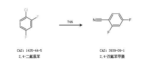 1.通过2,4-二氟氯苯合成2,4-双氟苯甲腈,收率约74%;