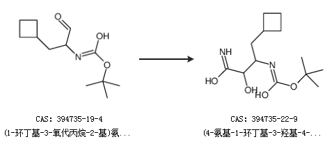 2.通过(1-环丁基-3-氧代丙烷-2-基)氨基甲酸叔丁酯合成(4-氨基-1-环丁基-3-羟基-4-氧代-2-丁基)氨基甲酸叔丁酯