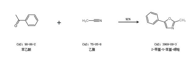 2.通过苯乙酮和乙腈合成2-甲基-5-苯基-噁唑,收率约92%;