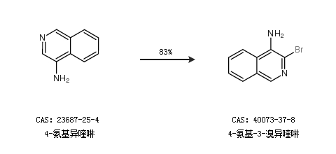 1.通过4-氨基异喹啉合成4-氨基-3-溴异喹啉,收率约83%;