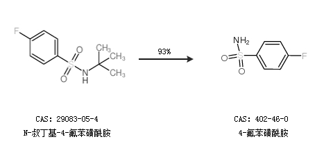 2.通过N-叔丁基-4-氟苯磺酰胺合成4-氟苯磺酰胺,收率约93%;