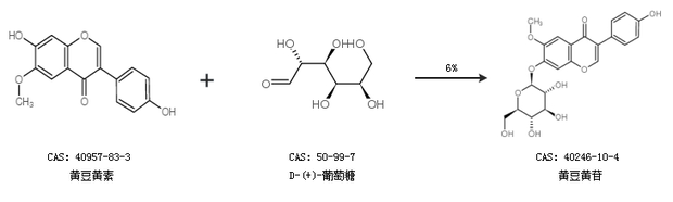 1.通过黄豆黄素和D-(+)-葡萄糖合成黄豆黄苷,收率约6%;