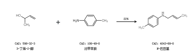 1.通过3-丁烯-2-醇和对甲苯胺合成N-巴豆基,收率约22%;