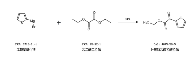 2.通过苯硫基溴化镁和乙二酸二乙酯合成2-噻酚乙酯乙酸乙酯,收率约84%;