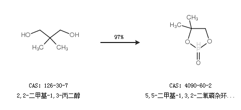 2.通过2,2-二甲基-1,3-丙二醇合成5,5-二甲基-1,3,2-二氧磷杂环己烷-2-酮,收率约97%;