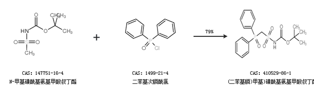 1.通过N-甲基磺酰基氨基甲酸叔丁酯和二苯基次膦酰氯合成((二苯基膦)甲基)磺酰基氨基甲酸叔丁酯,收率约79%;