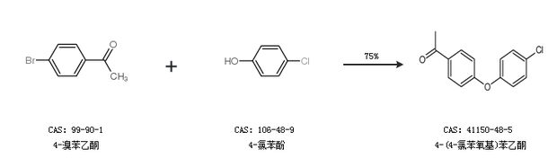 2.通过4-溴苯乙酮和4-氯苯酚合成4-(4-氯苯氧基)苯乙酮,收率约75%;