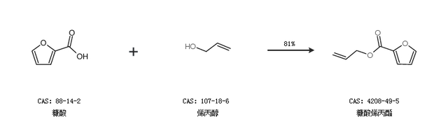1.通过糠酸和烯丙醇合成糠酸烯丙酯,收率约81%;