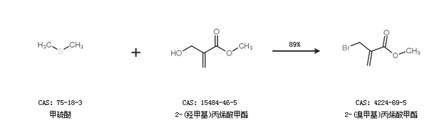 2.通过甲硫醚和2-(羟甲基)丙烯酸甲酯合成2-(溴甲基)丙烯酸甲酯,收率约89%;