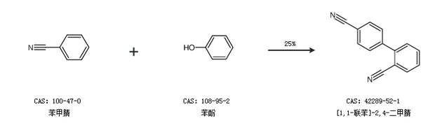 1.通过苯甲腈和苯酚合成[1,1-联苯]-2,4-二甲腈,收率约25%;