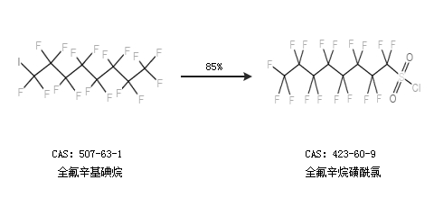2.通过全氟辛基碘烷合成全氟辛烷磺酰氯,收率约85%;