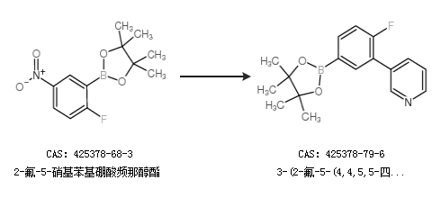 2.通过2-氟-5-硝基苯基硼酸频那醇酯合成3-(2-氟-5-(4,4,5,5-四甲基-1,3,2-二氧硼烷)苯基)吡啶
