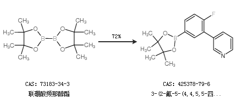 1.通过联硼酸频那醇酯合成3-(2-氟-5-(4,4,5,5-四甲基-1,3,2-二氧硼烷)苯基)吡啶,收率约72%;