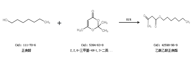 1.通过正庚醇和2,2,6-三甲基-4H-1,3-二英-4-酮合成乙酰乙酸正庚酯,收率约81%;