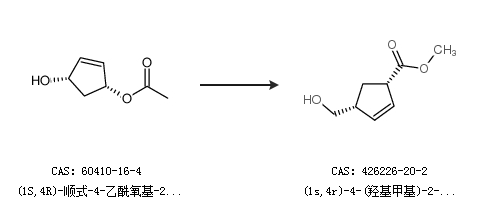 1.通过(1S,4R)-顺式-4-乙酰氧基-2-环戊烯-1-醇合成(1s,4r)-4-(羟基甲基)-2-环戊烯-1-羧酸甲酯
