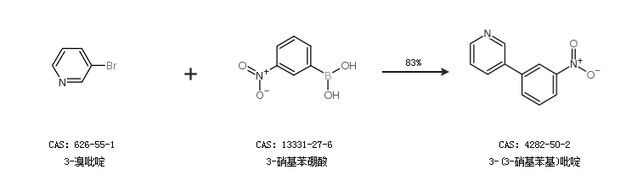 1.通过3-溴吡啶和3-硝基苯硼酸合成3-(3-硝基苯基)吡啶,收率约83%;
