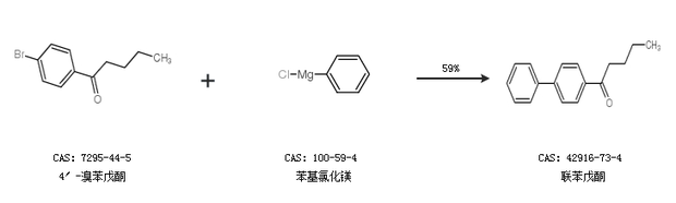 1.通过4′-溴苯戊酮和苯基氯化镁合成联苯戊酮,收率约59%;