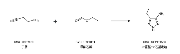 1.通过丁腈和甲酸乙酯合成3-氨基-4-乙基吡唑