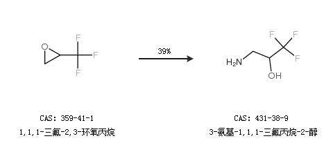1.通过1,1,1-三氟-2,3-环氧丙烷合成3-氨基-1,1,1-三氟丙烷-2-醇,收率约39%;
