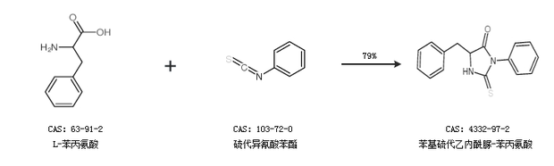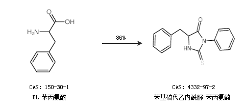 1.通过DL-苯丙氨酸合成苯基硫代乙内酰脲-苯丙氨酸,收率约86%;
