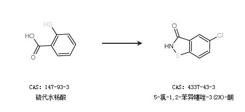 2.通过硫代水杨酸合成5-氯-1,2-苯异噻唑-3(2H)-酮