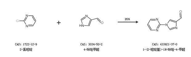 1.通过2-氯嘧啶和4-咪唑甲醛合成1-(2-嘧啶基)-1H-咪唑-4-甲醛,收率约85%;