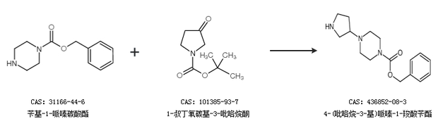 1.通过苄基-1-哌嗪碳酸酯和1-叔丁氧碳基-3-吡咯烷酮合成4-(吡咯烷-3-基)哌嗪-1-羧酸苄酯