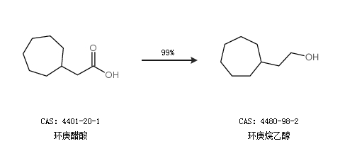 1.通过环庚醋酸合成环庚烷乙醇,收率约99%;