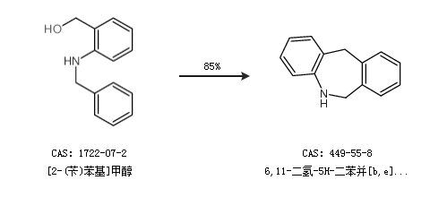 1.通过[2-(苄)苯基]甲醇合成6,11-二氢-5H-二苯并[b,e]氮杂卓,收率约85%;