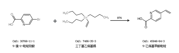 1.通过5-溴-2-吡啶羧酸和三丁基乙烯基锡合成5-乙烯基甲酸吡啶,收率约97%;