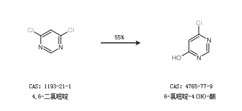 1.通过4,6-二氯嘧啶合成6-氯嘧啶-4(3H)-酮,收率约55%;