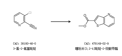 2.通过3-氯-2-氰基吡啶合成噻吩并[3,2-b]吡啶-2-羧酸甲酯